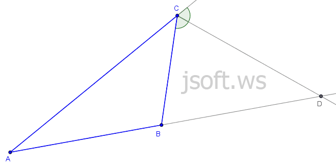 Məsələ 2: $\triangle ABC$-nin $C$ təpəsindəki xarici bucağın tənböləni $AB$ tərəfinin uzantısını hər hansı $D$ nöqtəsində kəsir, isbat edin ki,