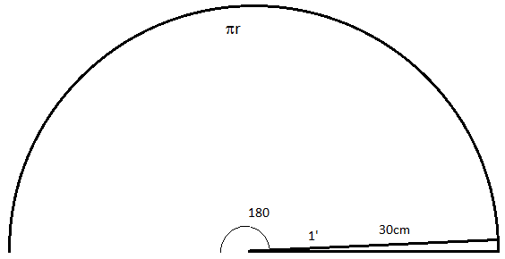 Bunu başqa cür də hesablamaq olar. 180 dərəcəlik bucağın cızdığı qövs πr-dir. Onda 1’- lik bucaq