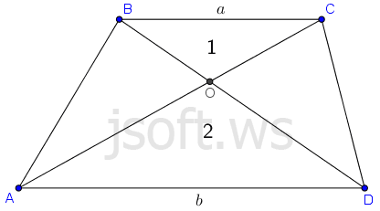 Məsələ 2: Trapesiyanın diaqonalları çəkilib. Kəsişmədə alınan oturacağa bitişik üçbucaqların sahələri məlumdursa trapesiyanın sahəsini tapın.