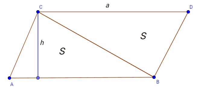 İsbatı: Şəkildən görünür ki, hər iki üçbucağın hündürlüyü $h$-dır. Onda